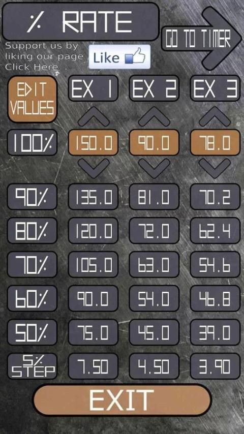 Sekarang Anda dapat menggunakan tab persentase kalkulator dari 1RM atas 3 latihan. Sangat berguna untuk jadwal pelatihan dan ketika Anda harus berlatih dengan berat benar-benar tepat tanpa membuka kalkulator Anda terus menerus, seperti dalam pelatihan strengh di persentase tetap.