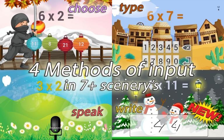Masukan Pidato unik: Selain memilih jawaban yang benar dari 4, atau masukkan jawaban yang benar dengan nomor pad, adalah mungkin untuk berbicara jawabannya! Google pengenalan suara api yang yang digunakan telah meningkat pesat. Suara anak-anak diakui sekarang. Mencobanya.