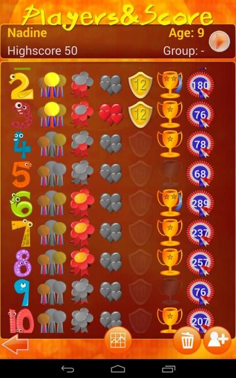 Skor dan meja bermain login dan dapat ulasan di 'Pemain dan Skor' menu. Anak-anak suka bermain dan setelah melihat kemajuan mereka dalam gambaran itu. Dan tentunya mengalahkan ibu atau ayah highscore adalah keren!