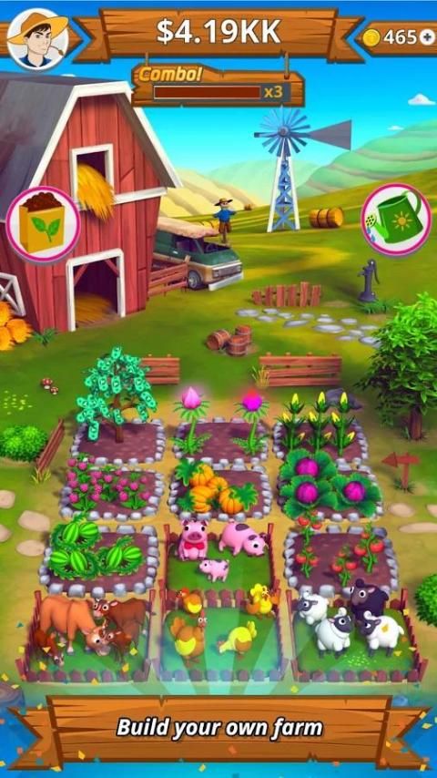Ketuk halaman pertanian untuk meningkatkan keuntungan dari tanaman dan hewan. Atau duduk dan menonton roll uang otomatis.