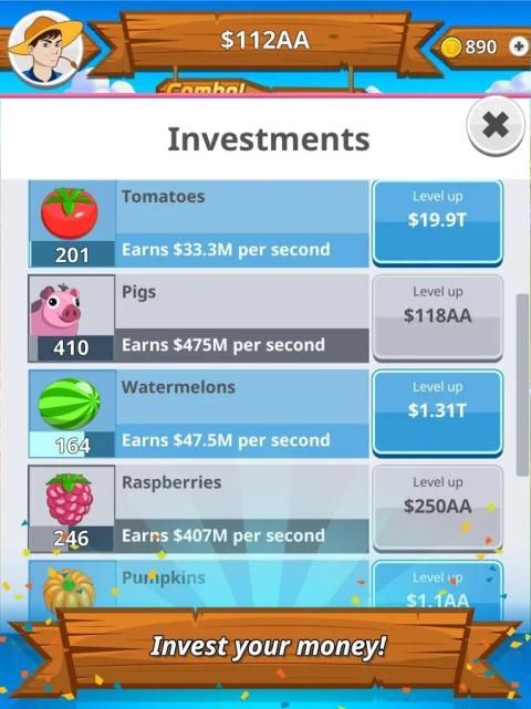 Dapatkan tumpukan uang tunai dengan berinvestasi pada sapi, babi, semangka dan lebih banyak lagi. Anda bahkan dapat tumbuh pohon uang. Ya aku tahu, gila! Uang tidak tumbuh di POHON!