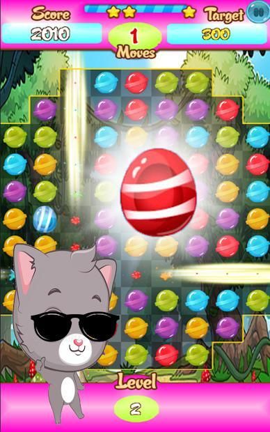 By mixing candy of the same color, collect as many points as possible with challenging levels, get spacial combos by matching more than 4 candies of the same color