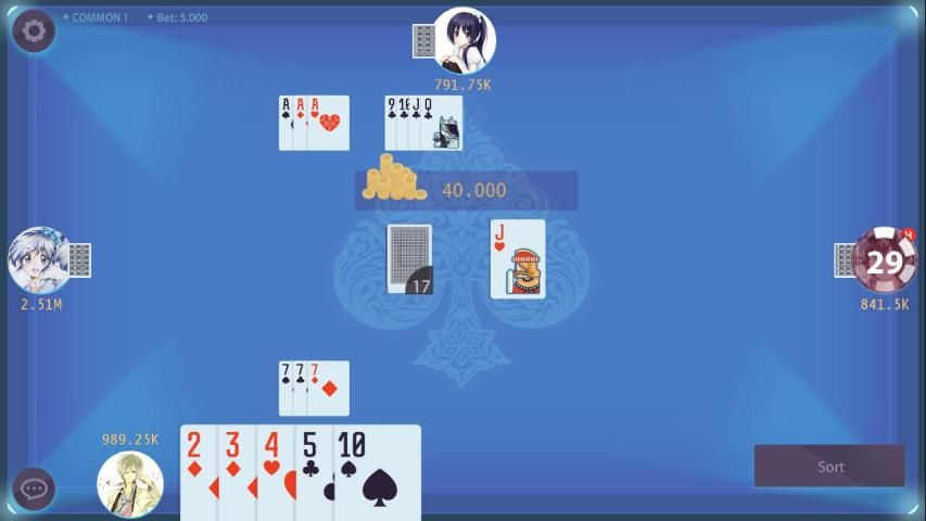 CONTOH: Anda memiliki (7,8,9 jenis yang sama seperti berlian ♦, hati ♥, sekop ♠ dan klub ♣), Anda dapat Meld set kartu.