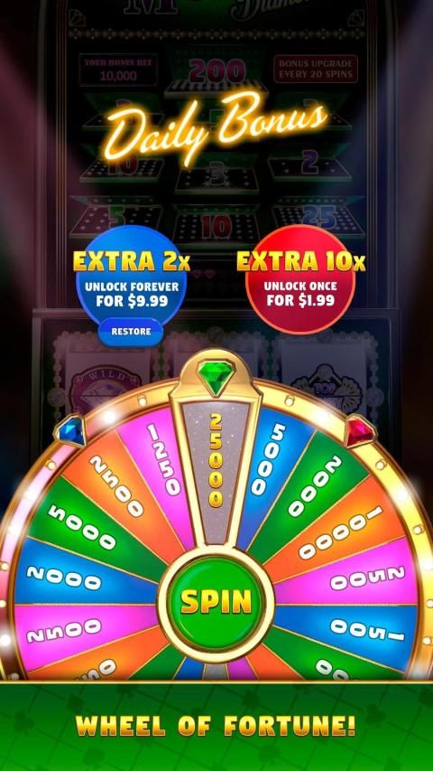 Slots Diamonds Uang Top akan memungkinkan Anda untuk memulai dengan paket selamat datang GRATIS untuk bergabung dengan pesta dan menikmati Putaran Gratis, bonus dolar progresif, Wheel of Fortune Spins dan banyak lagi ... semua fitur Slot Kasino nyata menanti Anda di slot gratis ini mesin.