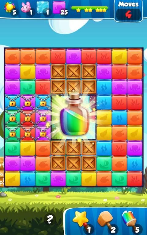tekan pada 9 atau lebih dan mendapatkan botol pelangi ajaib yang mengubah blok untuk warna yang berbeda.