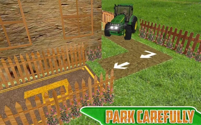 Merasa seperti sopir nyata kehidupan traktor yang mengendarai traktornya di desa yang sederhana dan kota sederhana di pertanian dan memarkir traktor di parkzone tersebut.