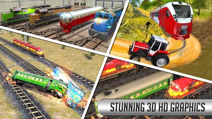 Hook your tractor to the Train Engine and give it a pull. Pull like a pro pulling the passenger Train with your tractor down the Railway trainline track.