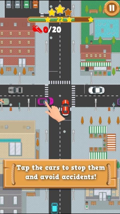 Tap the cars to freeze and unfreeze them, in order to avoid accidents and to respect several traffic laws, such as traffic lights, stop signs, give way and many more. Earn money when cars pass intersections safely, and buy new cars and upgrades to make your job easier.