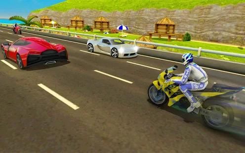 Choose your motor bike and enjoy the fast and the furious speed heavy bike racing with cars and ride on the highway asphalt in traffic rush. If you are a fan of heavy bike racing game you will enjoy the same thrill and action of extreme bike racing but you have to be a real stunt expert to do that. Live your wildest dreams of furious bike racing and road crash by fast speed in Traffic Racer Moto Bike Game 3D. Huge fan of bike race games then drags your wheel on heavy traffic roads in this street bike game. Ride your furious bike in endless highway roads overtaking city traffic.
