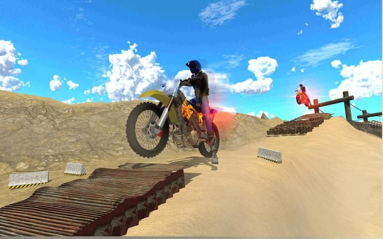 Join Biker Boys as Jump Skills Motocross bike Simulator on Big Ramp or Beach in Mountain Area. Turn the key, kick to Start your motorbike, Pull the throttle, Dirt Ride on stunt ramps, ride fast, jump to earn points and perform cargo job on big ramps.