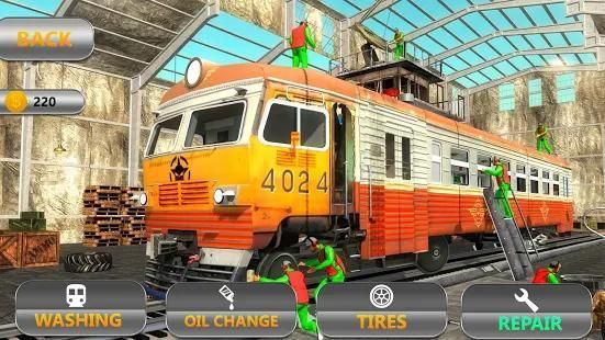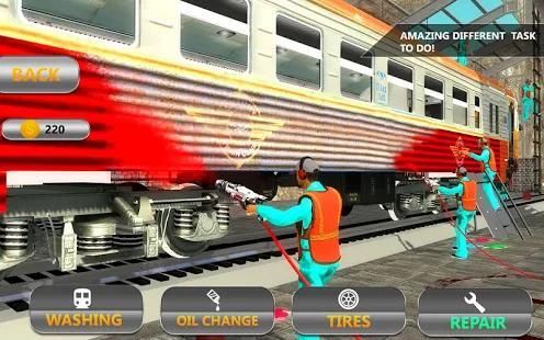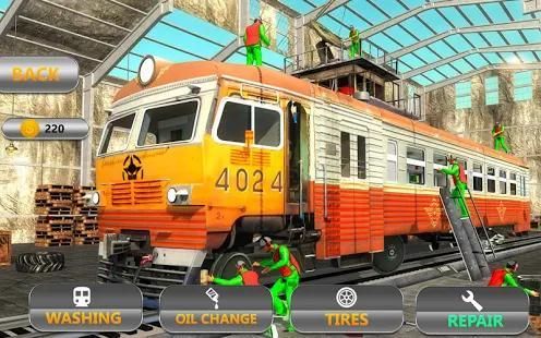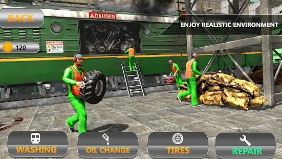 Sekarang berani bermimpi kereta Anda sepenuhnya upgrade ke tingkat terbaik. Berikan Max kesempatan untuk memperbaiki, membangun dan menyesuaikan peluru dan euro Anda kereta di bengkel kereta mekanik ini. Jalankan auto kereta bengkel di Amerika Serikat dan memperbaiki kereta jumpai dalam kecelakaan kereta api. Anda harus memperbaiki mesin, body, peluit kereta api dan mengisi minyak dan biaya atau mengganti baterai dan melakukan modifikasi kereta kustom juga. Jadi mengambil sekrup dan kunci pas dan mulai bekerja di kereta nyata mekanik bengkel simulator 2017.
