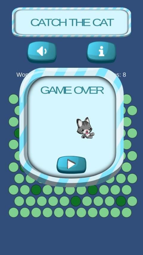 Permainan otak ini mudah untuk bermain. Yang perlu Anda lakukan adalah dengan mengklik ladang hijau. kucing akan bergerak ke perbatasan papan. Jangan biarkan dia lolos, mencoba untuk menangkapnya antara titik-titik hijau gelap!
