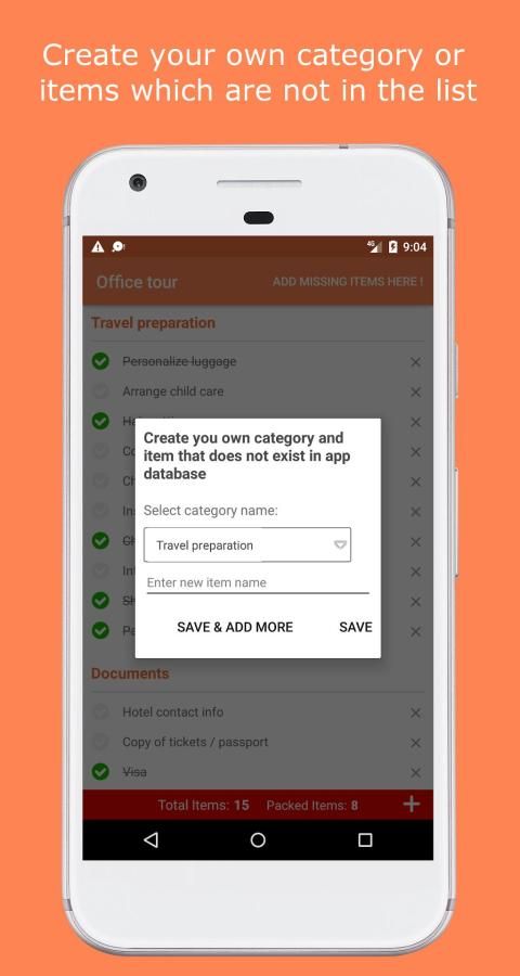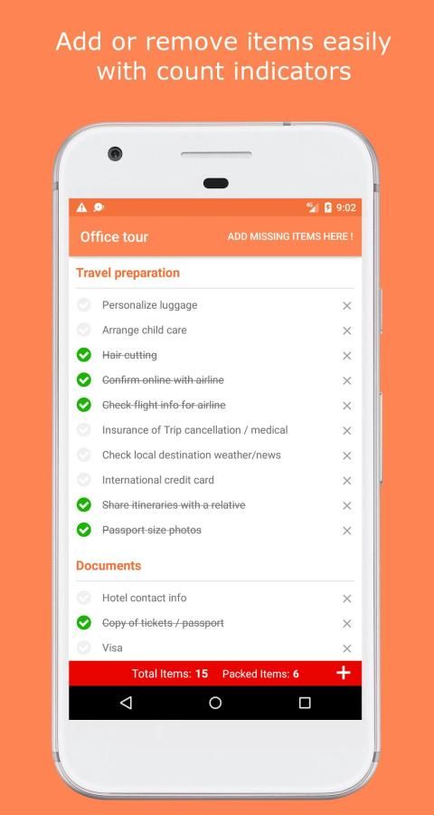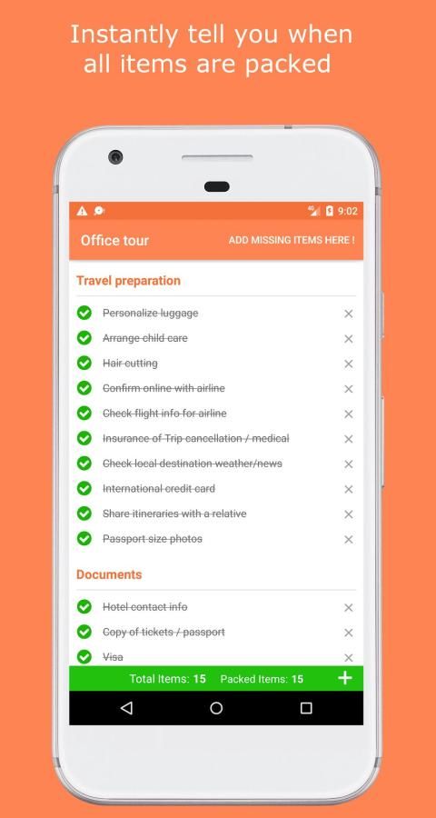 * Mudah mencari item total dan item yang tersisa di daftar pengepakan / perjalanan Anda
