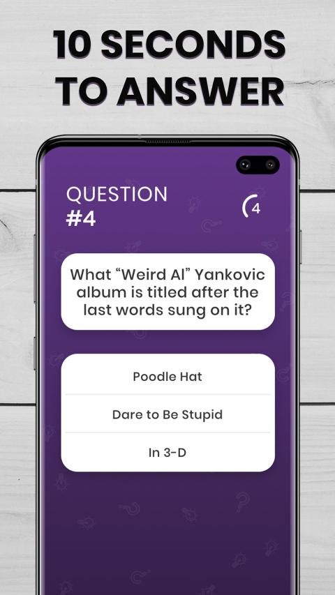 Lebih dari 12.000 pertanyaan, 5 hidup dan hanya 10 detik untuk menjawab, Bisakah Anda mengalahkan yang terbaik? Bergabunglah dengan komunitas kami dan bersaing untuk mencapai posisi teratas. Pilih kategori atau mainkan semuanya, Anda tidak akan pernah tahu jenis pertanyaan apa yang akan muncul selanjutnya.