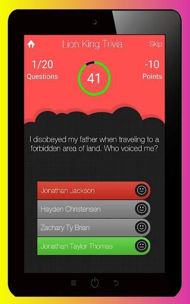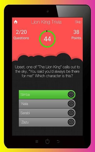 ► Test yourself to see how much can you remember from the animated musical film, The Lion King, in a free, fun and addictive android quiz game made for the true fans of the computer-animated adventure musical film.