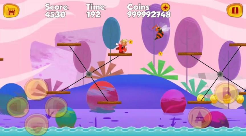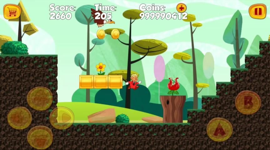 Trump'll menjalankan dan mengumpulkan koin, power-up untuk melawan dengan 8 bos di 4 dunia, menghancurkan dan menghancurkan.