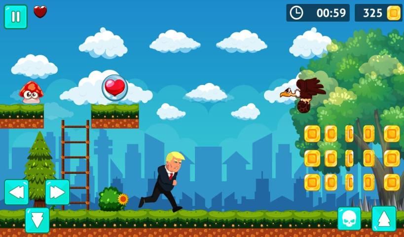 Download this action-arcade adventure game for super running and endless adventures of super trump by having the world tour. Collect double coins and achieve the double score.