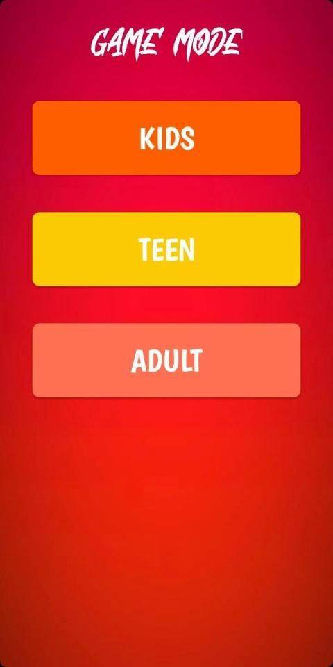 ✔ 3 different game modes - Kids, Teens and Adult (18+). Note: Adult Mode should only be played if you are over 18 as it contains dirty dares.