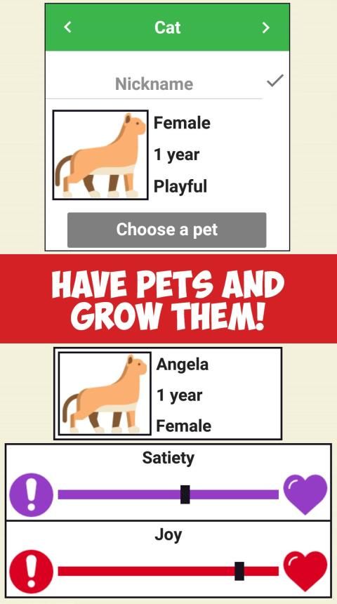 – GROW and take care of your pets. There are many pets, from cats to turtles. Your pets are constantly growing, so do not forget to take care of them and feed them!