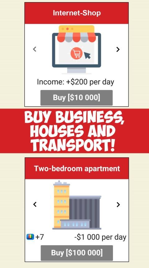 – BUILD your own business, from a simple online store to a huge corporation. The better your business, the more you earn!
