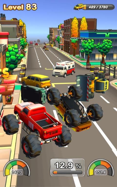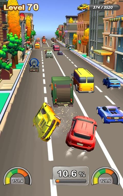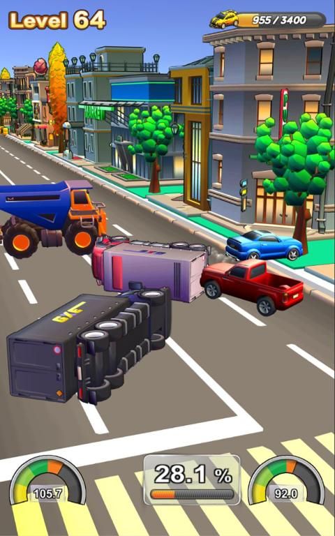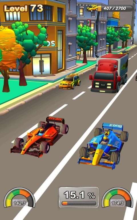 Control two cars that race across the city