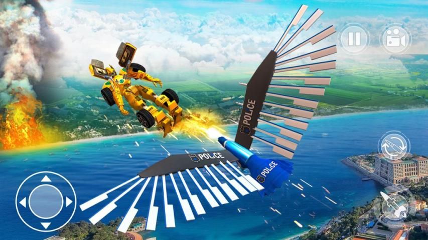 US Police Car Transform Eagle Robot Cop Simulator has lot of rescue missions with challenging levels. Each level is much interesting and thrilling flying rescue mission, 3D well designed environment with intuitive controls and amazing graphics will give you amazement for several hours so without wasting your time enjoy this real cop game