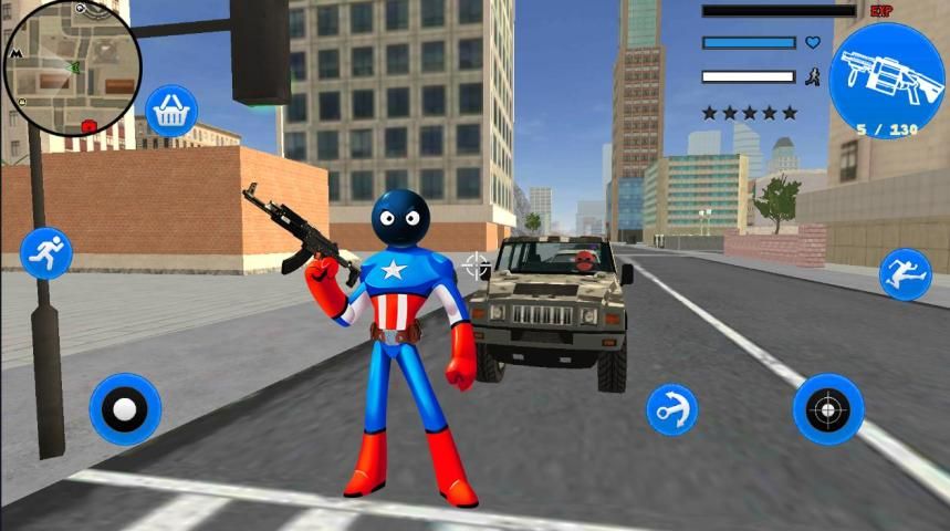 US Stickman Captain Stickman Rope Hero Counter Stickman Capitaine american Rope Hero Gangster counter terrorist Hero Gangster Crime true hero comes to help the citizen.