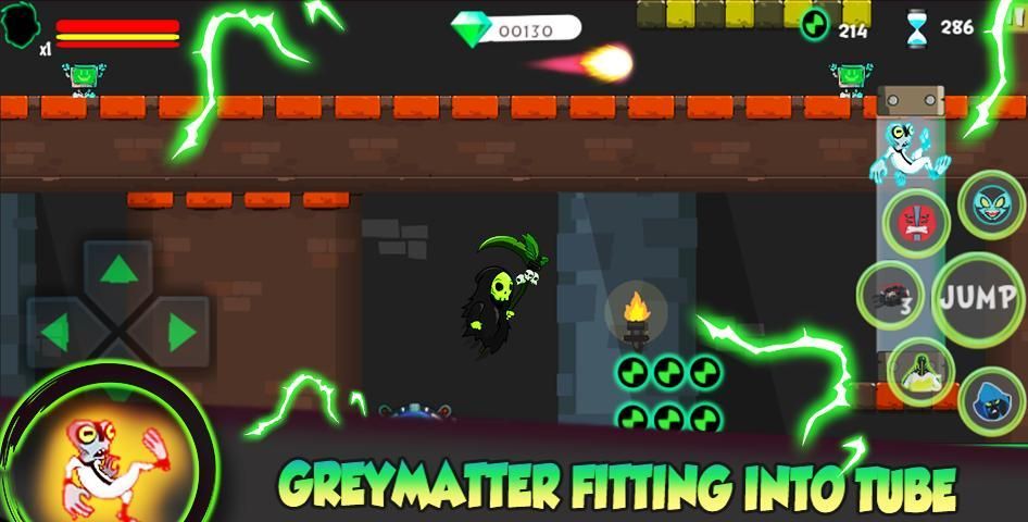 + Ben Alien juga dapat berenang di beberapa kasus menonton - tekan tombol Jump berenang lebih tinggi ... debit jari Humungousaur dari hasil tangkapan untuk turun! Mess gwen main dengan cerita yang super petualangan platformer permainan baru keren ini!
