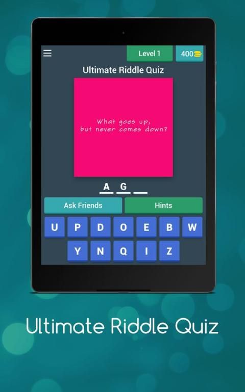 Ultimate Riddle Quiz adalah aplikasi kuis teka-teki gratis yang dirancang untuk bersenang-senang dan tujuan pendidikan untuk perangkat Android Anda. Aplikasi kata ini adalah teaser otak utama, dengan ton menyenangkan dan teka-teki intens untuk memilih dari.