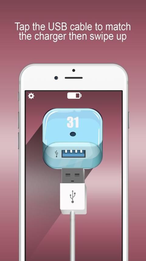 - Swipe up to connect the USB cable to the charger