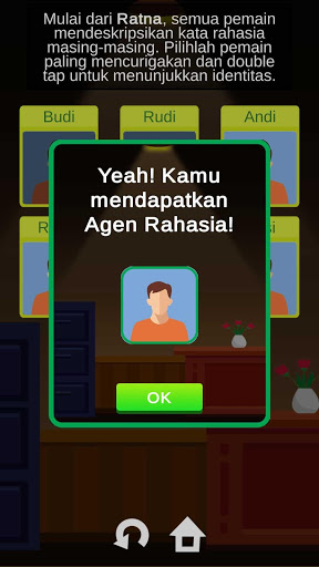 - Kata Rahasia : Putarkan smartphone secara bergiliran ke seluruh pemain untuk mengisi nama dan mendapatkan kata rahasia. Warga Sipil akan mendapatkan kata yang benar, Agen Rahasia akan mendapatkan kata yang sedikit berbeda, dan Tuan Misterius akan mendapatkan tanda ^^