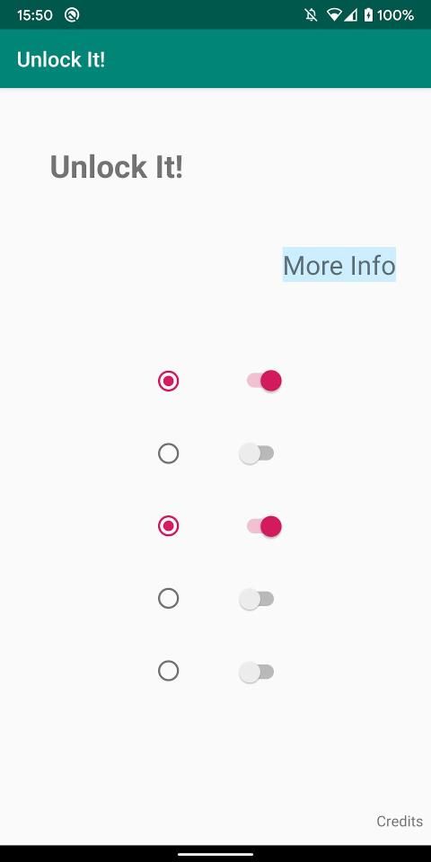 Unlock It! is a game. The game is to discover the right code by the switches selection. If you do not find out the code, each selected switch goes to off after 3 seconds. Please note, the right code has to be on the right sequence, too. You do not have so much time to figure it out. Good luck! Have fun, too. Unlock It!
