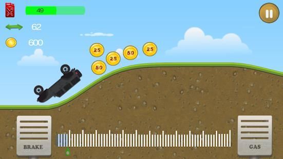 Mengendalikan mobil atau sepeda untuk mendaki bukit dengan kontrol yang paling realistis untuk menghadapi tantangan menanjak & menurun lingkungan yang unik. Mendapatkan bonus dari trik dan mengumpulkan koin untuk meng-upgrade mobil Anda dan mencapai jarak yang lebih tinggi.