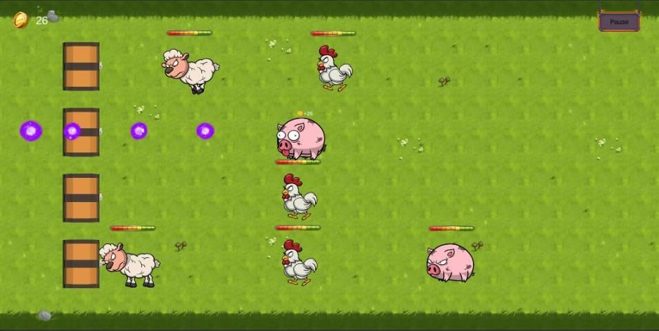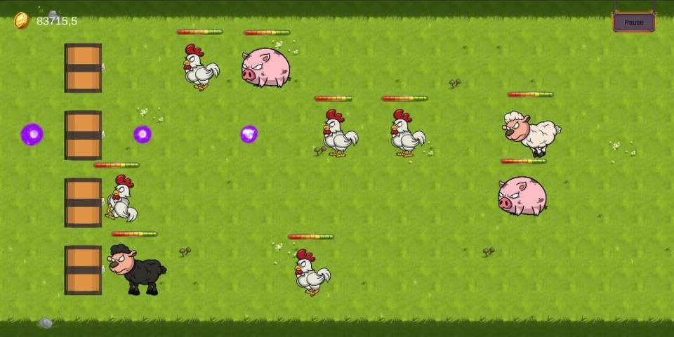 In Upgrade Farm, you defend your treasure chests from growing groups of different farm animals.