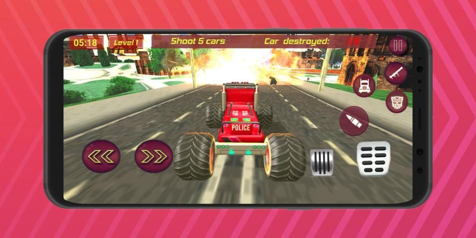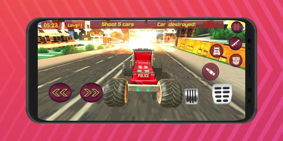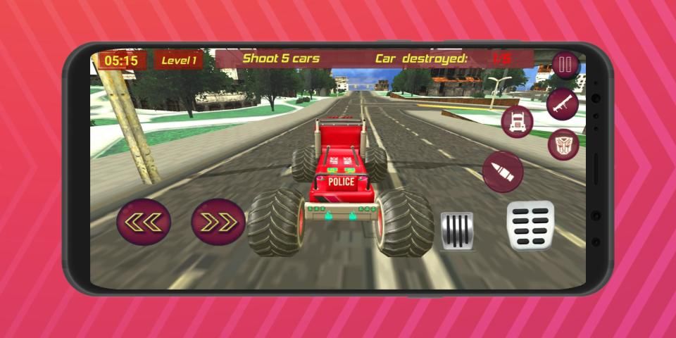 Take a tour in this new battle of police monster truck games to feel real powers and knacks which are under your belt in the form of powerful police truck robot of robot truck games.