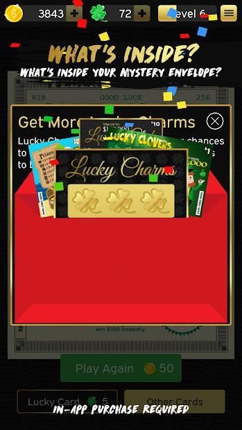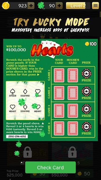 Tingkat atas dan membuka kartu awal baru semakin sambil bermain. Scratch off panel bonus untuk memenangkan uang bonus.
