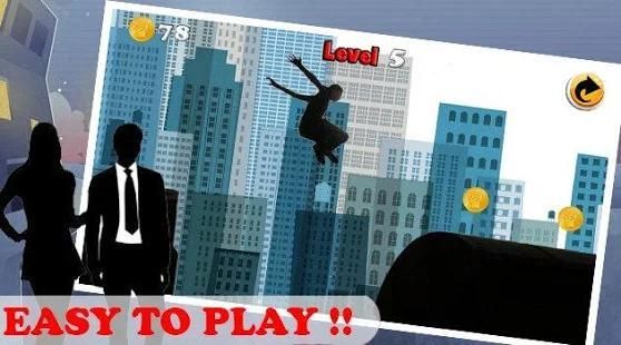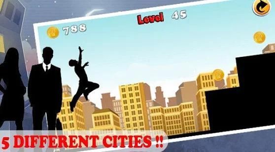 Collect coins to unlock and perform all unique stunts to show the best result at different missions! Don’t forget that your character is just a normal mortal man, not supernatural shadow vector runner - avoid the fall from roofs, result of this failing would be character’s death!