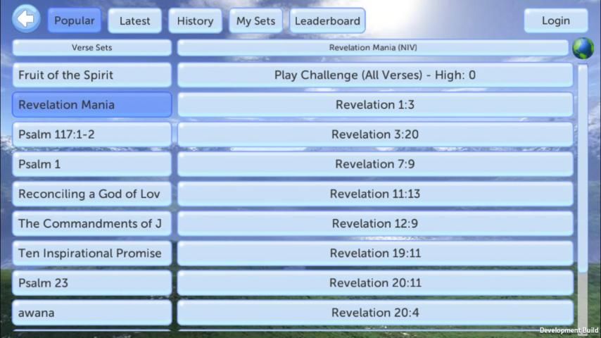 • Challenge mode reinforces memorizing of multiple verses in a related verse set