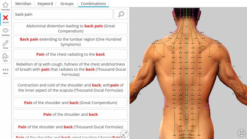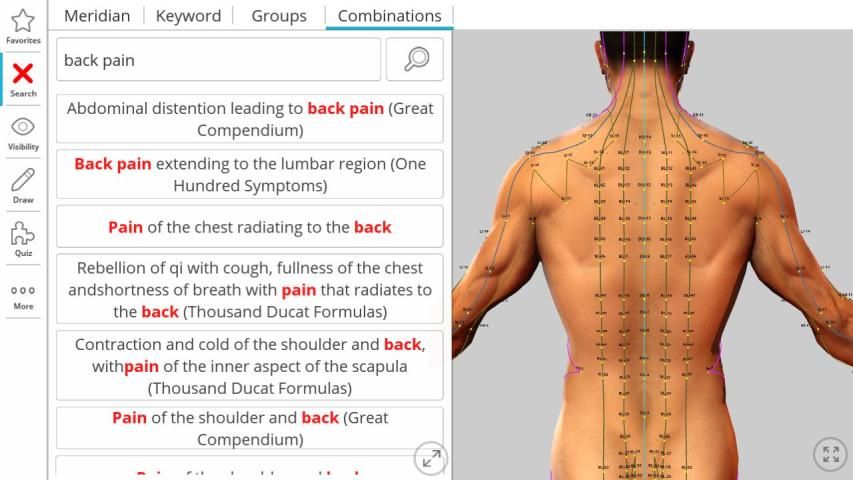 Contains extended searching options; search by acupuncture point name, function or by indication for any acupuncture points.