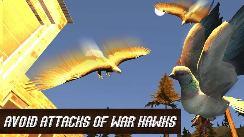 Bersiap-siap untuk simulator burung utama dan terbang seperti merpati pos! Meningkatkan keterampilan Anda terbang seperti burung langit nyata, memperoleh poin, membeli power-up dan tingkat atas kemampuan merpati Anda! Menjaga kesehatan, tingkat kelaparan dan energi - mencoba untuk bertahan hidup di medan perang!