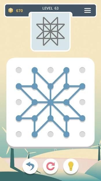 Drag any line to a point, and divide it into two new lines; the new lines can also be divided. Again and again, a few lines can weave countless wonderful patterns. Some patterns look simple but intriguing, others look complicated but regular. You just need to observe and try, and you will enjoy a series of joys !