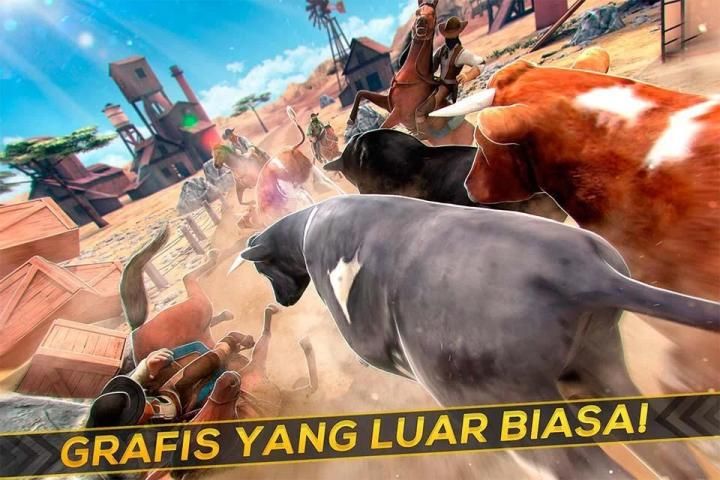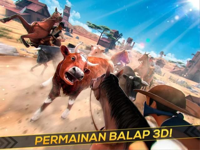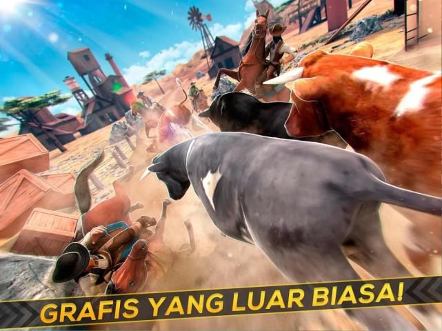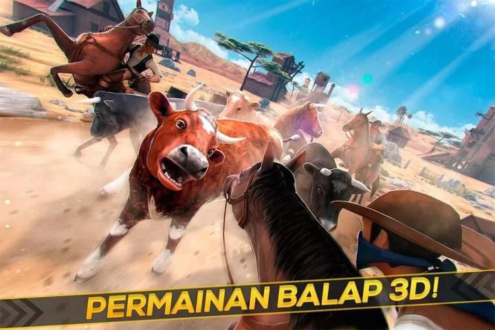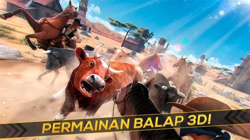 -> Sebuah permainan sapi pelarian balap di adegan penuh aksi