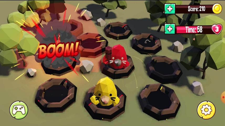 Nikmati Whac A Mole dan lihat berapa banyak tahi lalat yang bisa Anda pukul dalam Peluang yang diberikan, Dalam game ini, tahi lalat yang buruk memakan Kesempatan Anda dan 5 kali mengenai tahi lalat yang buruk Game Over!