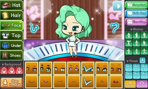 You can change the background, 9 poses and motions, you can also store your Pretty Girl in 6 slots.