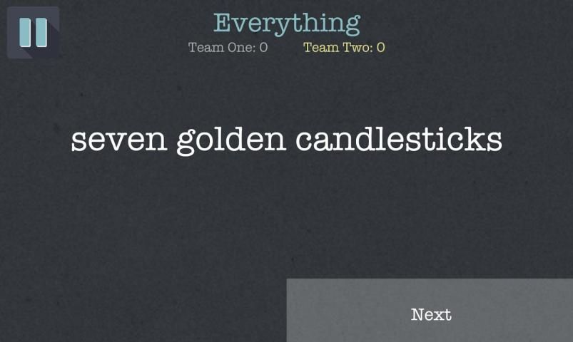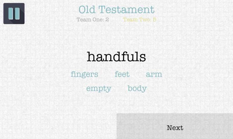 Membawa keluarga Anda dan teman-teman bersama-sama selama berjam-jam menyenangkan dengan serba cepat trivia game. Segala usia akan menikmati melaju melalui kategori seperti Lama dan Perjanjian Baru, Judul Pesan, Still Waters, dan banyak lagi! Yang Anda butuhkan adalah ponsel atau tablet, dan dua atau lebih pemain bersedia untuk menebak dari ribuan kata-kata dan frase yang diambil langsung dari Alkitab dan Pesan Brother William Branham.