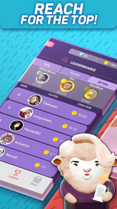 Train and compete to achieve the highest scores and see how you compare against hundreds of thousands of Wild Words players from around the world. Climb to the top of the League and become the WILD WORDS champion!