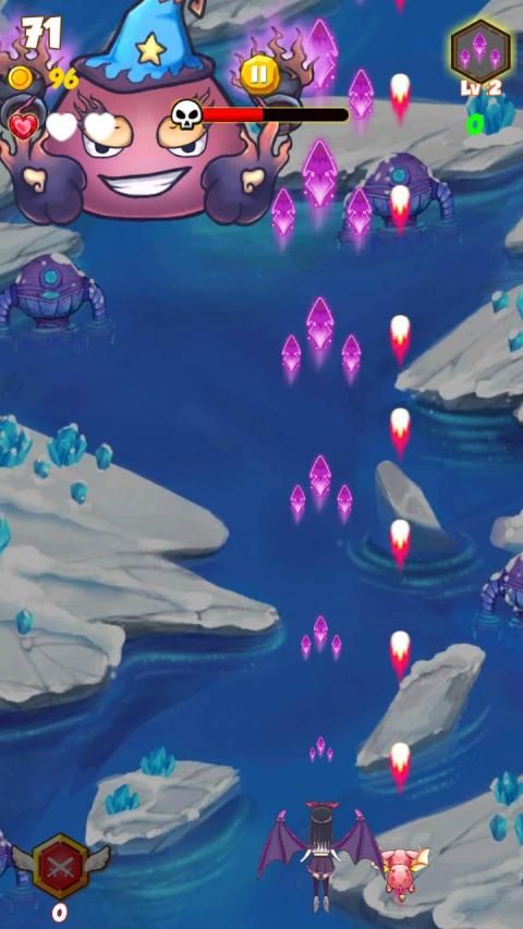 - Move your space Hero to attack, as well as avoid collision with monsters.
