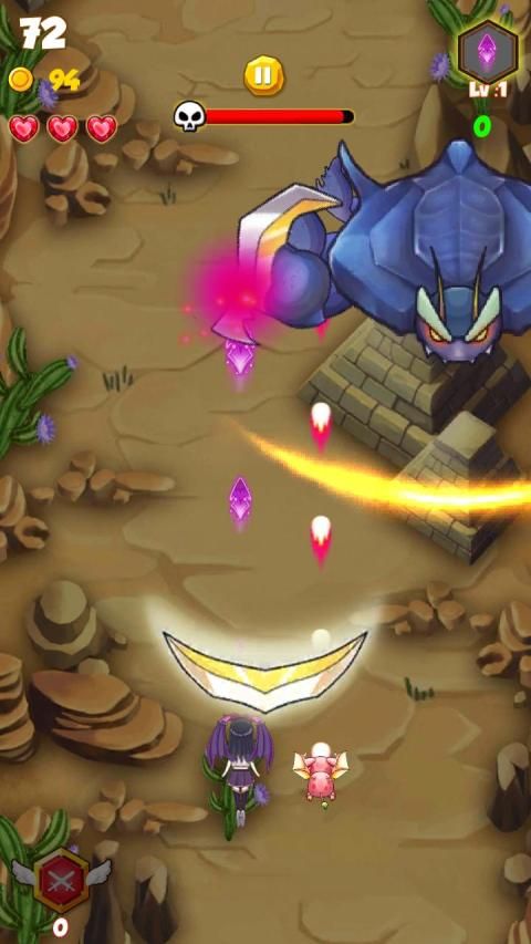 - Pindahkan Pahlawan ruang Anda untuk menyerang, serta menghindari tabrakan dengan monster.