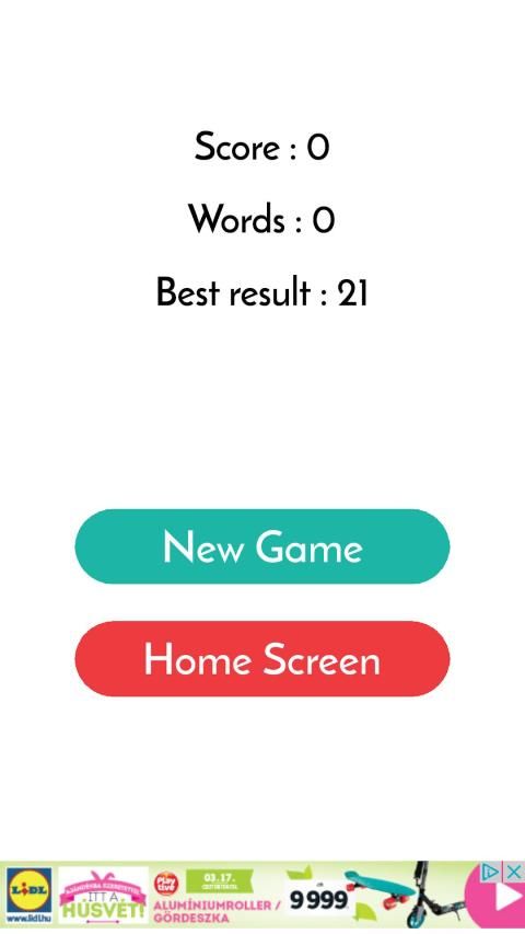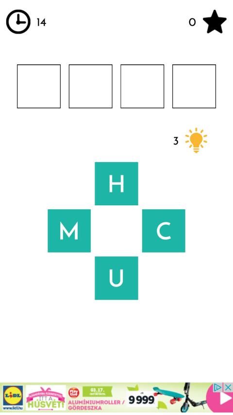 Time to test your knowledge of 4 letter English words. Start a game and try to guess the correct word by swiping your finger across the letters. It might sound easy, but it's actually pretty hard!