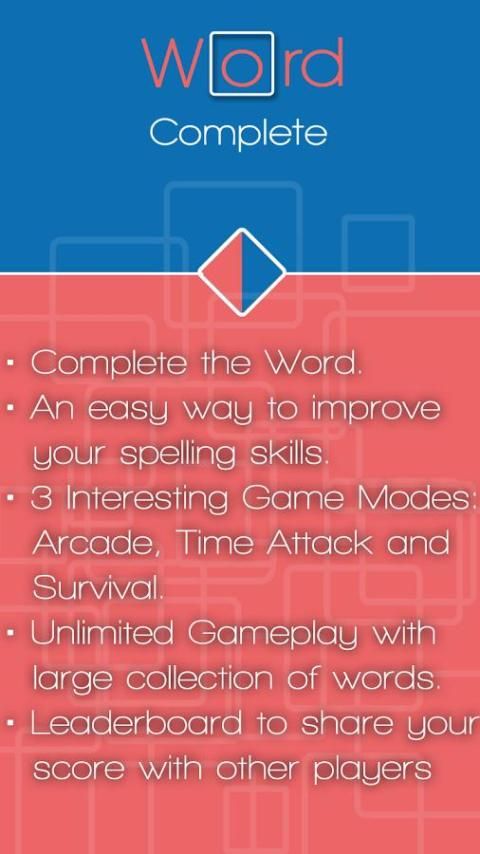 Kata Complete adalah mudah untuk memainkan permainan mantra Inggris yang membantu Anda untuk belajar ejaan yang benar dari kata-kata dengan cara yang menyenangkan.